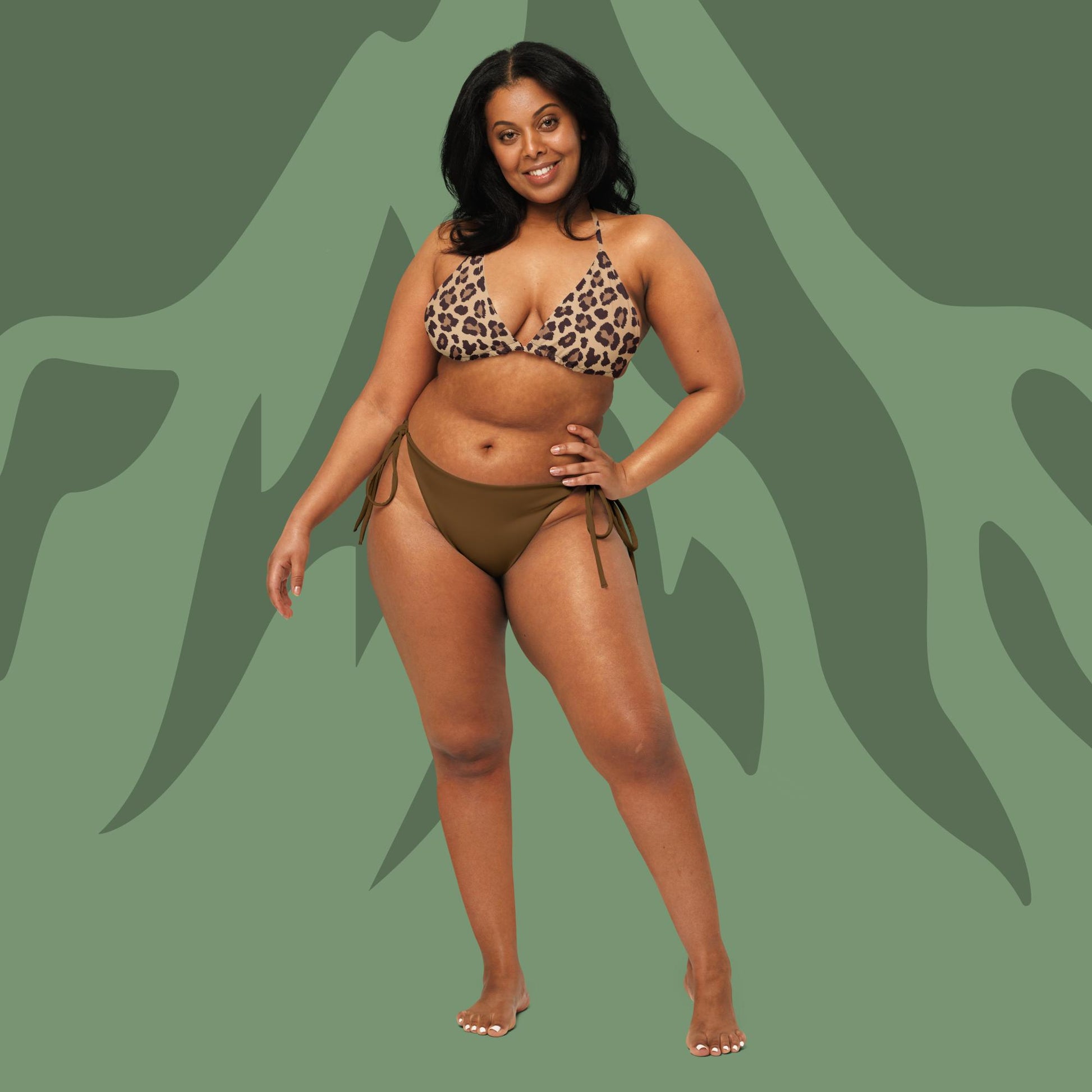 All-over print recycled string bikini Leopard Brown Bottom