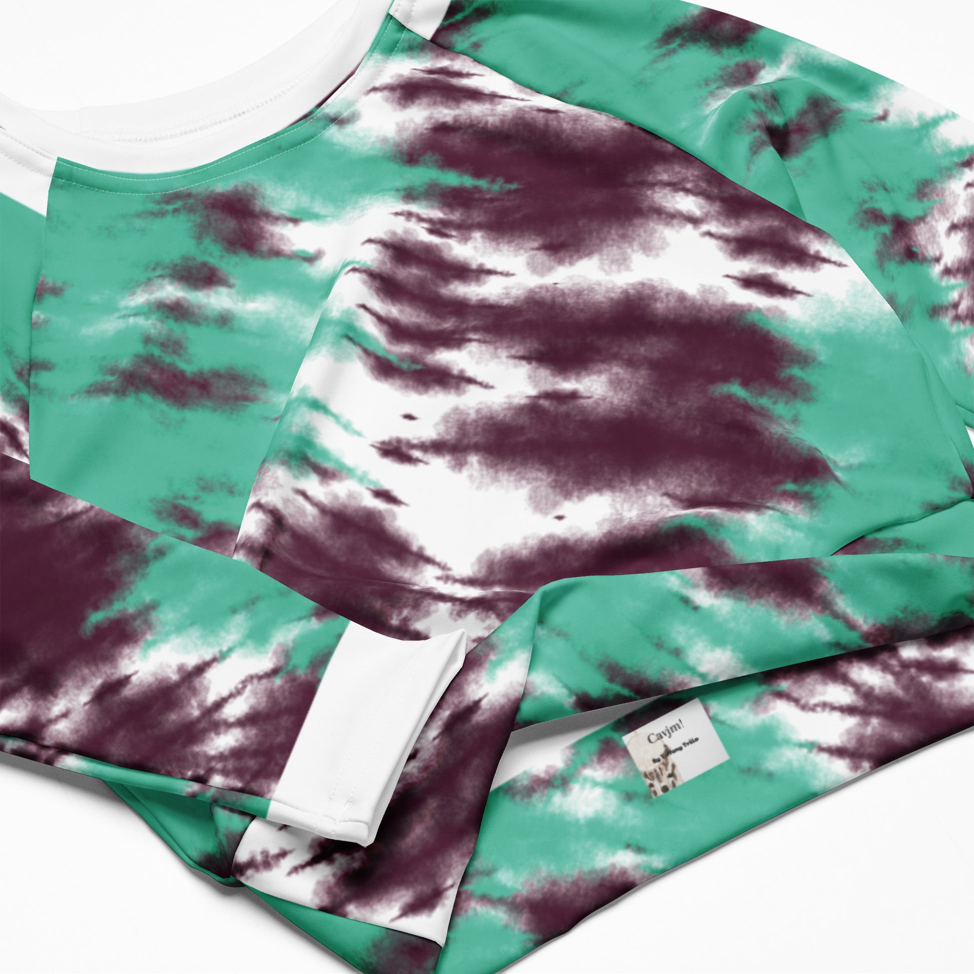 This long-sleeve crop top is made of recycled polyester and elastane, making it an eco-friendly choice for swimming, sports, or athleisure outfits. The crop top has a tear-away care label and a wide, double-layered waistline band for a comfortable fit.