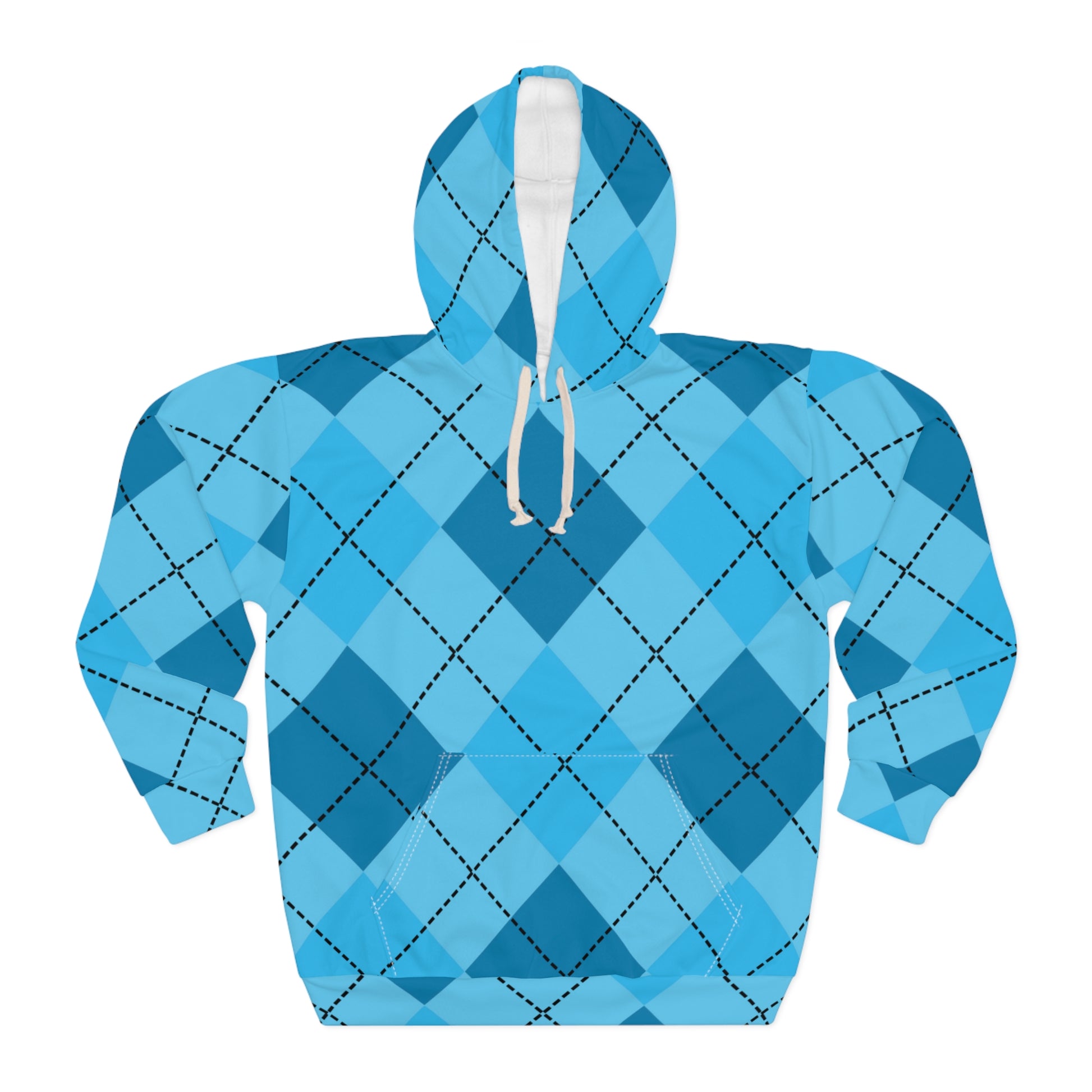 This Pullover Hoodie is made for warmth and comfort. Made to be easily customizable without white lines at the seams, this all-over print pullover hoodie is waiting for you to add a great design and it instantly becomes fashionable. It features a large front pocket, a hood with a drawstring, and is custom cut and sewn.