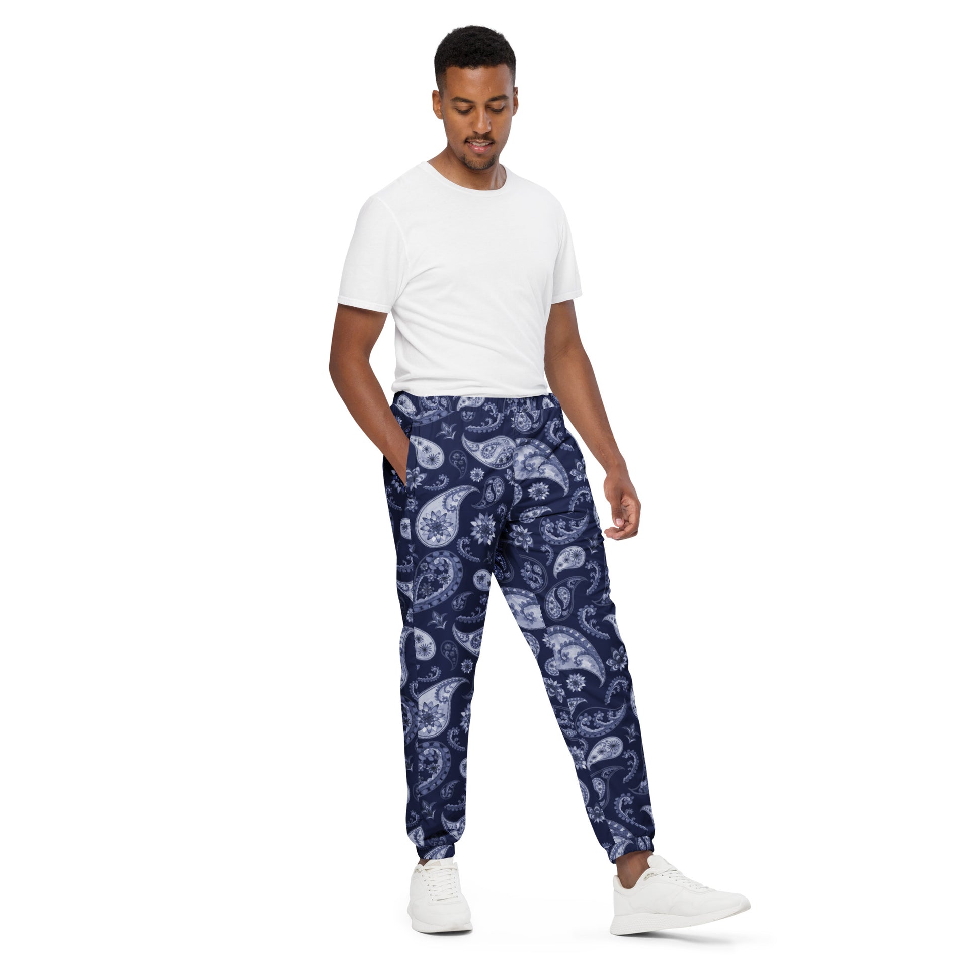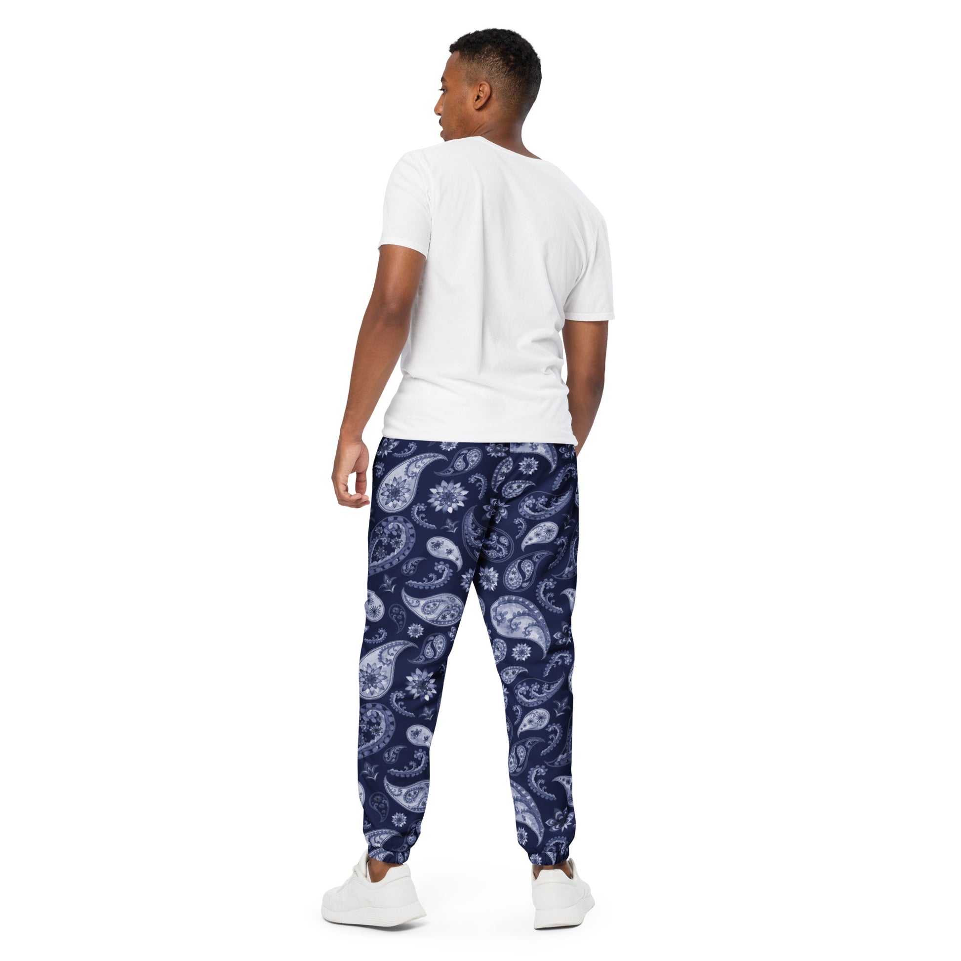 Unisex track pants Adult Activewear Navy Blue and Light Blue Paisley Design